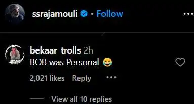 In his latest post, the RRR director shared a photo of himself standing in front of a striking image of a lion, captured by South African ichthyologist Chris Fallows. Rajamouli tagged Mahesh Babu’s Instagram account on the lion’s face, generating a buzz among fans. Moreover, the caption, “This is the King of the Serengeti, captured by Chris Fallows. His name is BOB Junior… Does it ring a bell?”, amused and excited netizens.